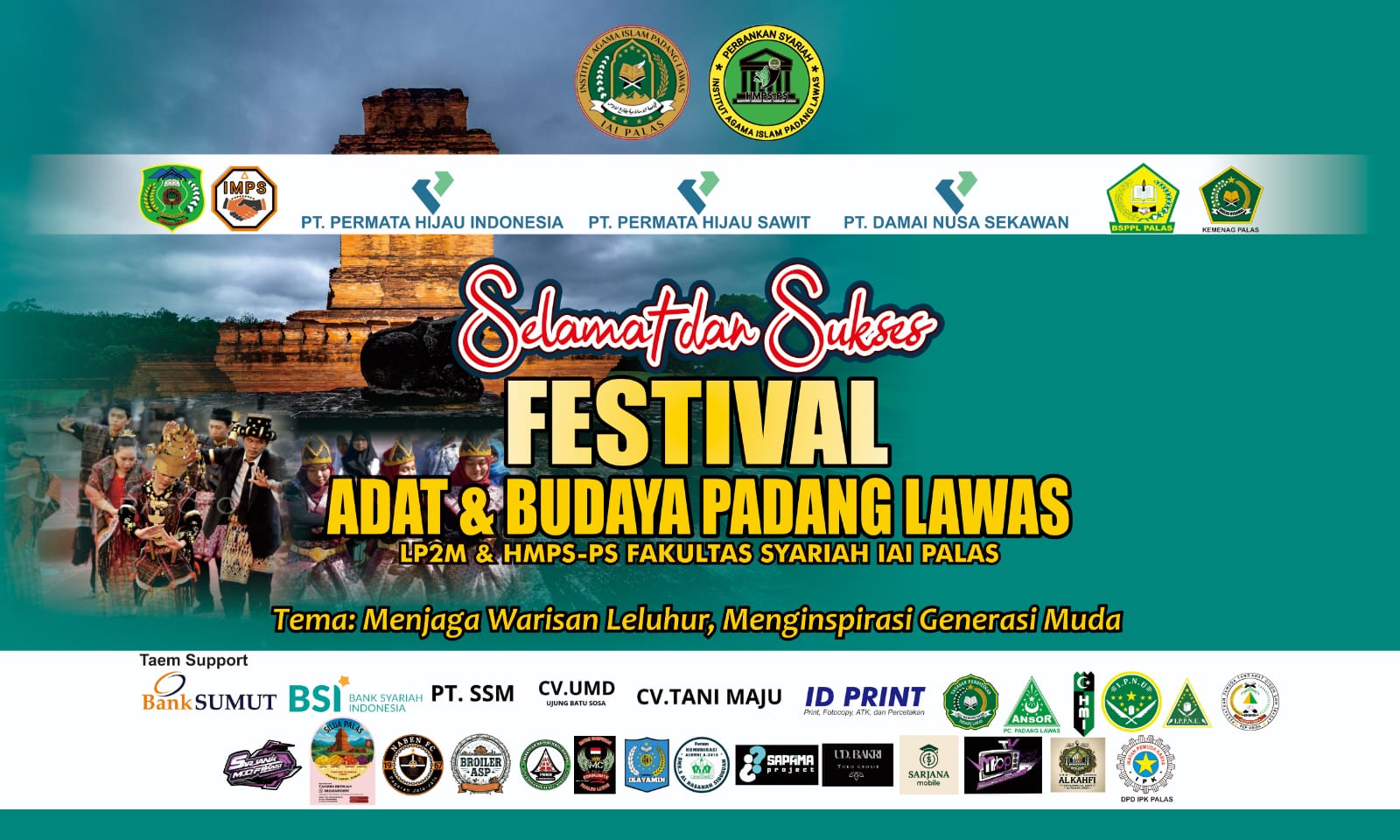 Acara ini mendapat perhatian luas dan dihadiri berbagai stakeholder penting. Dari unsur pemerintah daerah turut hadir Kabid Kebudayaan, Dewan Pendidikan Padang Lawas, perwakilan Kemenag Palas, BSPPL, serta sejumlah perusahaan seperti PT Permata Hijau Indonesia, PT Permata Hijau Sawit, dan PT Damai Nusa Sekawan. Hadir pula Bank Sumut, Bank BSI, serta berbagai organisasi kemahasiswaan di Padang Lawas.