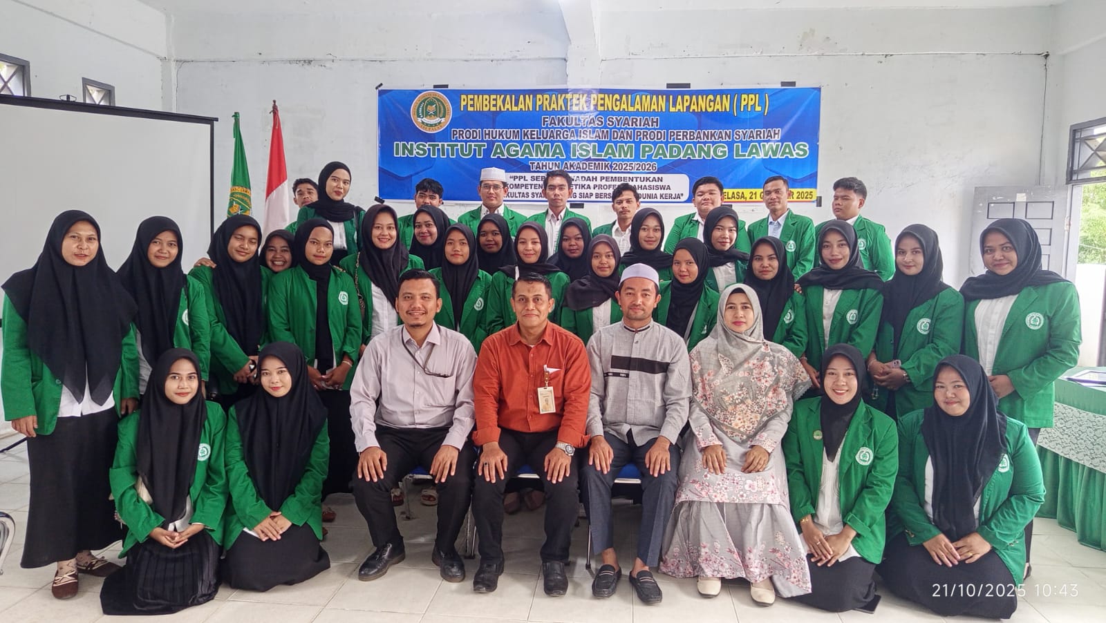 Padang Lawas, 21 Oktober 2025 – Fakultas Syariah Institut Agama Islam Padang Lawas (IAI Palas) menggelar kegiatan Pembekalan Praktek Pengalaman Lapangan (PPL) dengan mengusung tema “PPL sebagai Wadah Pembentukan Kompetensi dan Etika Profesi Mahasiswa Fakultas Syariah yang Siap Bersaing di Dunia Kerja”. Kegiatan ini diikuti oleh 73 mahasiswa, terdiri dari 40 mahasiswa Program Studi Hukum Keluarga Islam (HKI) dan 33 mahasiswa Program Studi Perbankan Syariah.